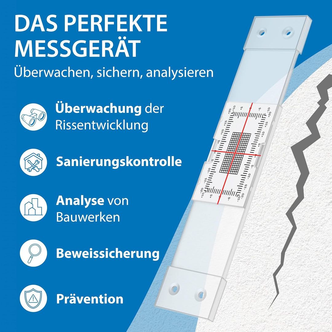 - ✔️ 2 x EXAKTE MESSUNG – Der Präzisions - Rissmonitor ist perfekt für die Arbeit von Sachverständigen geeignet. Sie können Risse mithilfe eines haargenauen Fadenkreuzes und eines Strichrasters Verformungen in Millimetern messen.