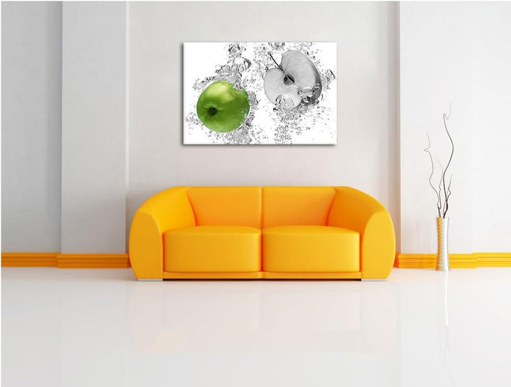 saftig grüne Äpfel im Wasser schwarz/weiss Format: 100x70 auf Leinwand, XXL riesige Bilder fertig ge