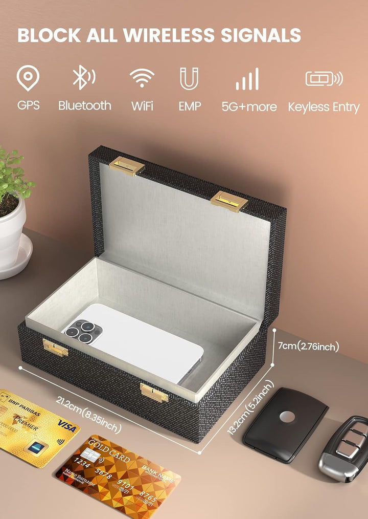 - Ultimativer drahtloser Schutz -- Samfolk Faraday-Box schirmt Autoschlüsselanhänger, Kreditkarten, Handys, GPS-Geräte, Sender oder andere elektronische Geräte ähnlicher Grösse vor allen drahtlosen Signalen ab, einschliesslich RFID, WiFi,
