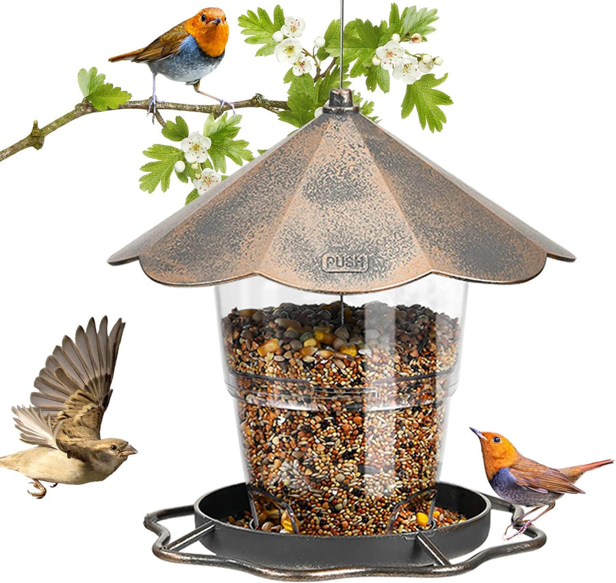 - 🕊【Einfach zu wechseln】- Drücken Sie den PUSH von Vogelfutterhäuser, um den Deckel zu öffnen, geben Sie Körnerfuttersamen usw. in das vögel futterhaus, schliessen Sie den Deckel und stellen Sie das futterhaus vögel hängend auf den Balkon,