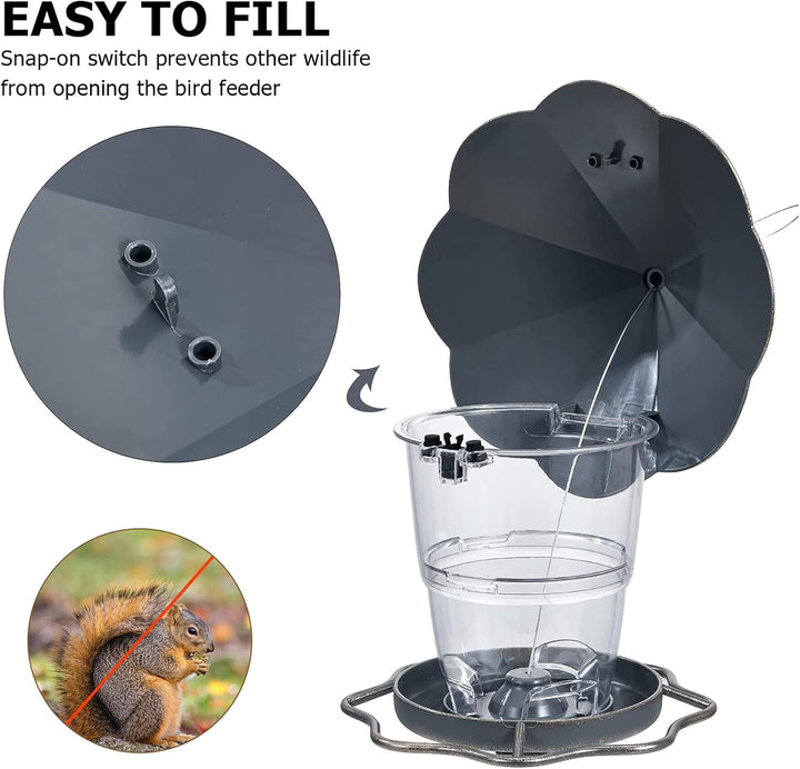 - 🥜【Grosse Kapazität】- Futterhaus für Vögel kann bis zu 40 oz/2,5 lbs Futter aufnehmen. Es können verschiedene Futtermittel gefüllt werden, um Vögel anzulocken, wie Erdnüsse, Sonnenblumenkerne mit schwarzem Öl, Saflorsamen, um Kardinäle,