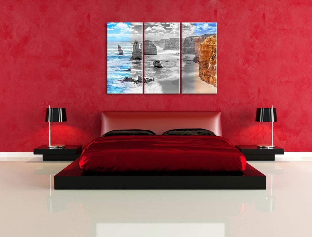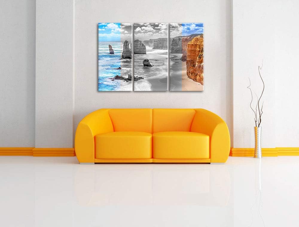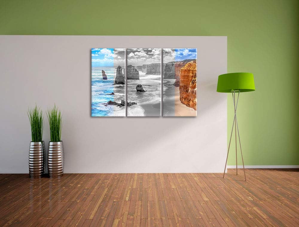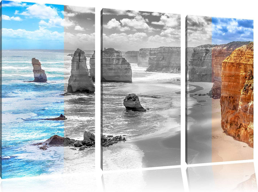 Sansteinklippen an blauem Meer schwarz/weiss 3-Teiler Leinwandbild 120x80 Bild auf Leinwand, XXL rie