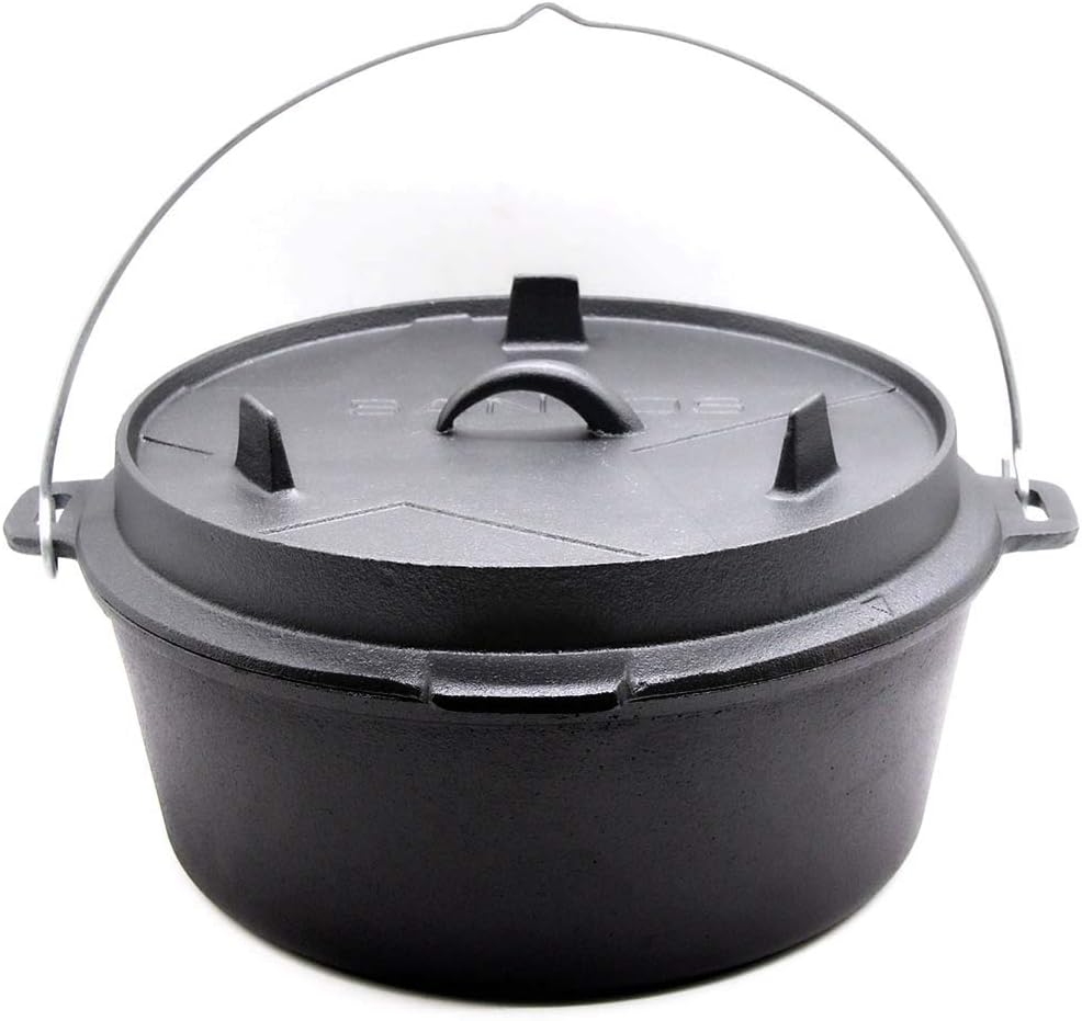 - LIEFERUMFANG - Gusseisen Dutch Oven 12 Qt. mit Deckel - inklusive seitlicher Durchführung für Thermometer zur Kontrolle des optimalen Grillgenusses