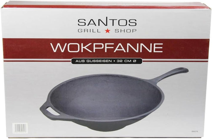 - TECHNISCHE DATEN - SANTOS Wokpfanne aus Gusseisen - Innenmass: ø31,8 cm - Länge inkl. Griffen: 48,8 cm - Gusseisen