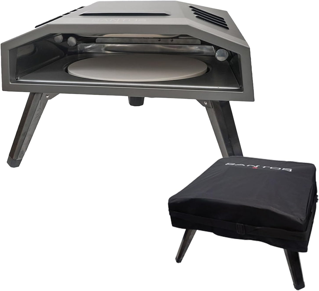 - AUssENKÜCHE - Schwarzer Pizzaofen SANTOS O-160 - elegante Optik - ideale Ergänzung für die Aussenküche - 7,5KW Heizleistung - inklusive Pizzastein 37cm
