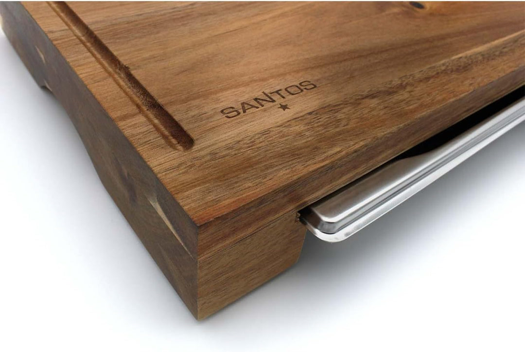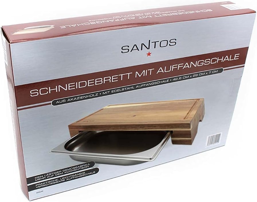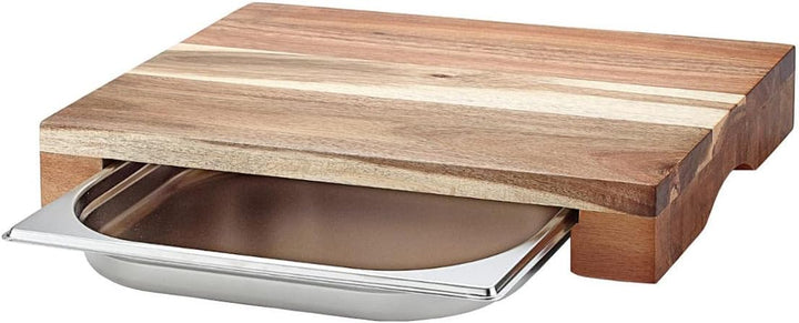 - TECHNISCHE DATEN - Akazien-Schneidebrett - 43x7x28cm - Edelstahl-Schale - 32,5x4x26,5cm - Füllhöhe: 4cm - Schneiden, Hacken, Tranchieren & Servieren