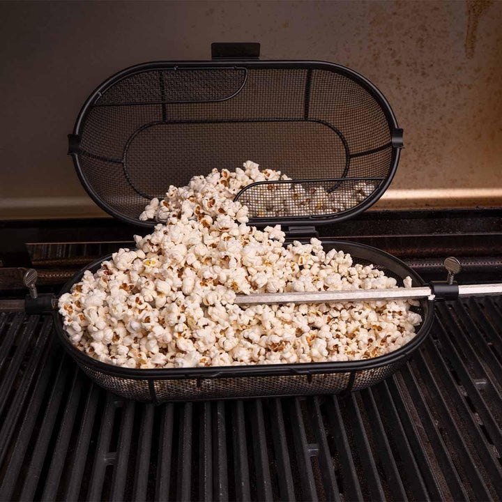 • EINFACHE HANDHABUNG - Korb öffnen, Grillgut einlegen, Korb verschliessen, Drehspiess durch Öffnungen des Grillkorbs führen, Schrauben fixieren - los gehts!