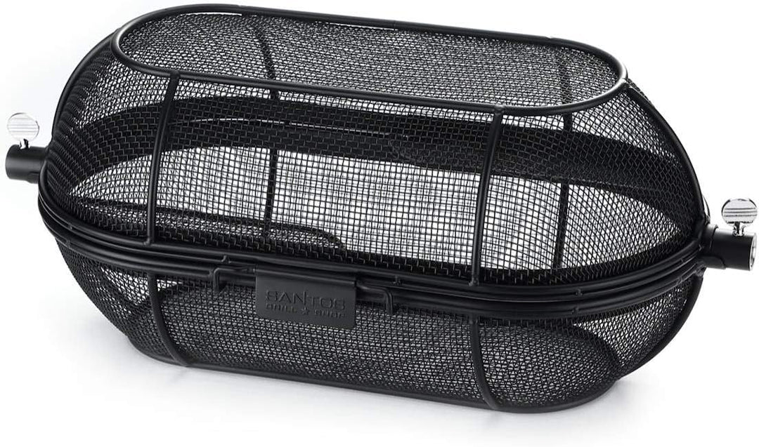 SANTOS Drehspiess-Korb für Drehspiesse (⌀ max 11mm) - Grillkorb Stahl schwarz - Grillzubehör - Fleis