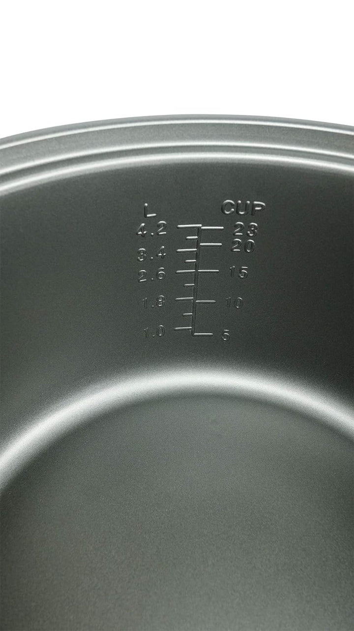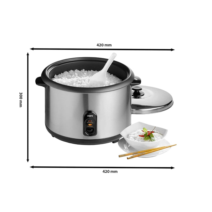 - Zwei Kontrollleuchten: Kochen und Warmhalten