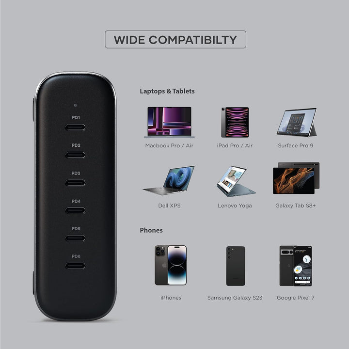 - 3x SCHNELLER LADEN – Mit dem neuesten GaN-Chip unterstützen zwei von sechs USB C 3.1-Anschlüssen maximal 140W. Dieser USB-C-Schnelllader kann alles aufladen oder mit Energie versorgen, was ein bisschen Power benötigt – Zeitersparnis inklusive.
