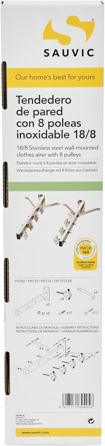 - Wandwäscheaufhänger mit 8 Rollen aus elektropoliertem Edelstahl 18/8 (AISI 304).