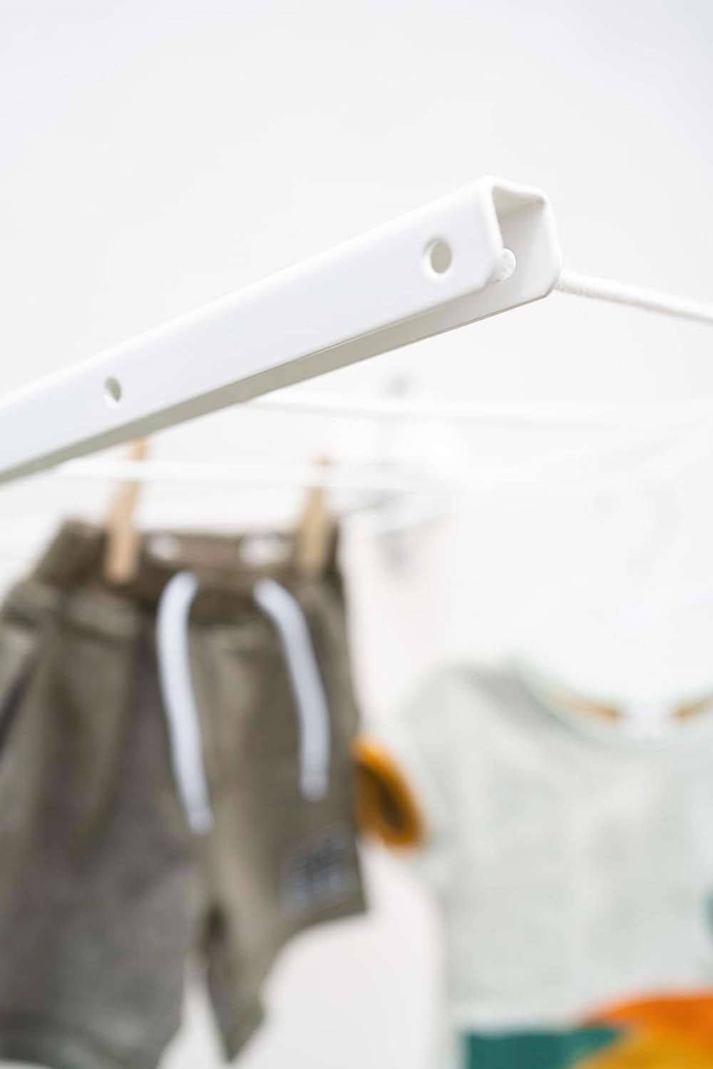 - Wäscheaufhänger aus verzinktem Stahl mit weisser Keramikfarbe.