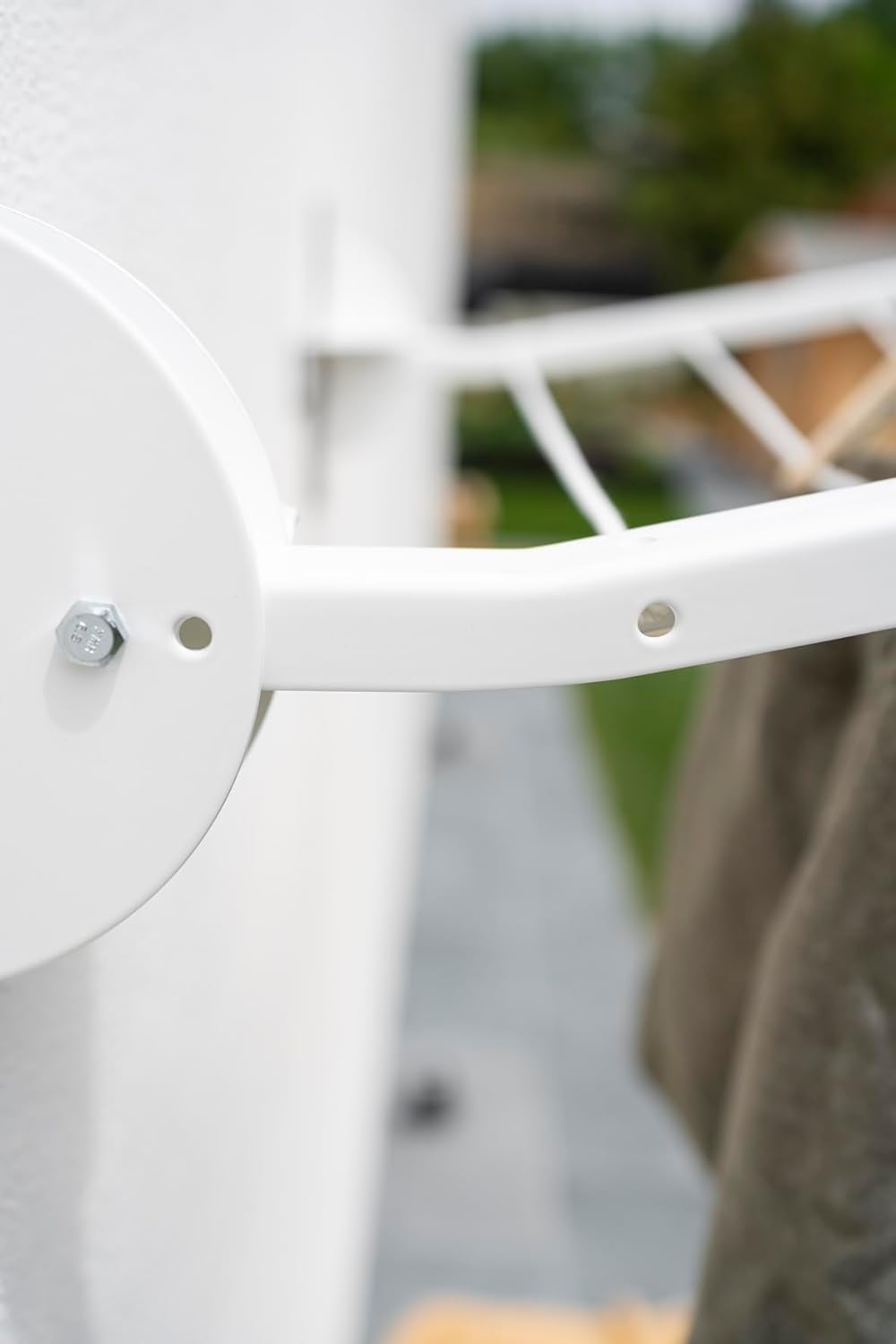 - Der Artikel besteht aus 2 Auslegern mit 54 cm Länge und jeweils 5 Löchern. Die Wäscheleine ist nicht inbegriffen. Das Material für die Installation ist inbegriffen.