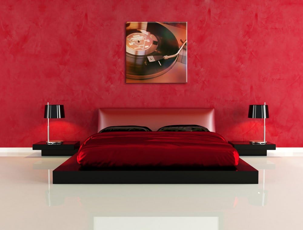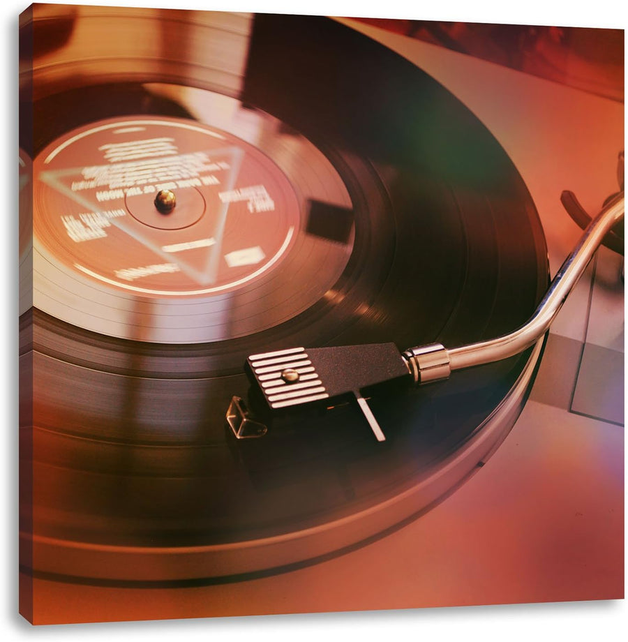 Schallplatte Oldschool, Format: 70x70 auf Leinwand, XXL riesige Bilder fertig gerahmt mit Keilrahmen