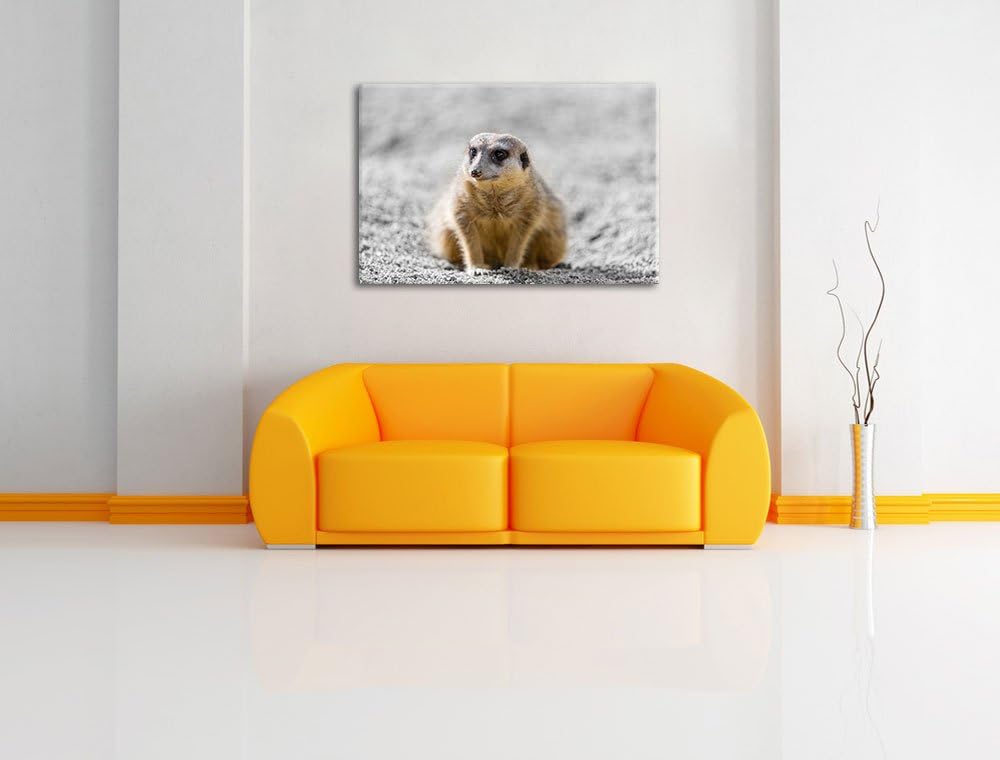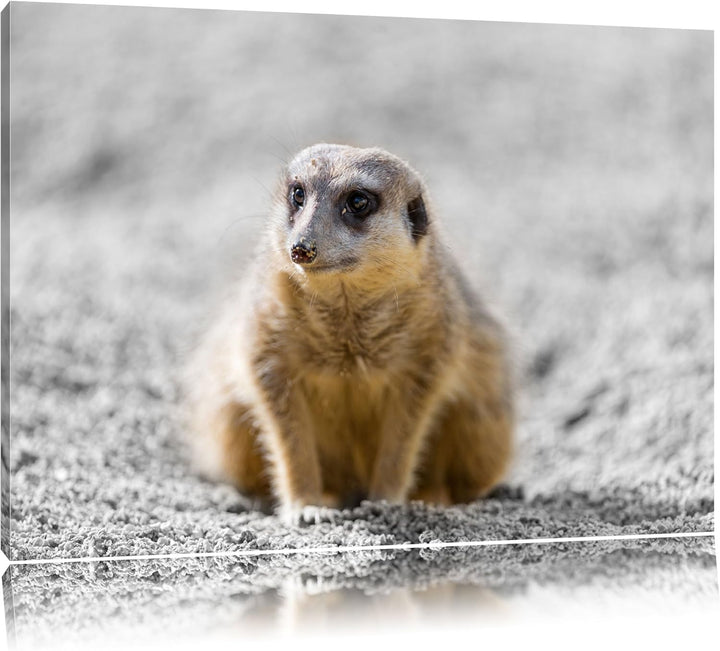 schüchternes Erdmännchen schwarz/weiss auf Leinwand, XXL riesige Bilder fertig gerahmt mit Keilrahme