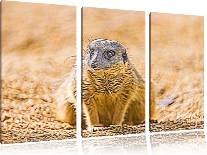 schüchternes Erdmännchen NewArt 3-Teiler Leinwandbild 120x80 Bild auf Leinwand, XXL riesige Bilder f