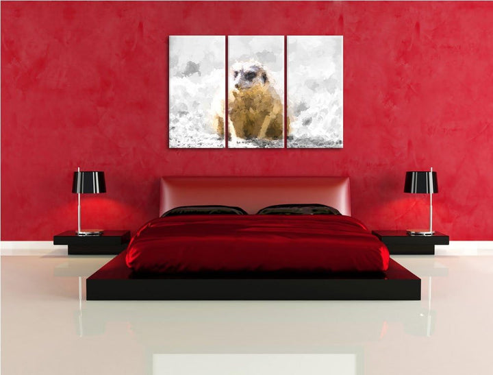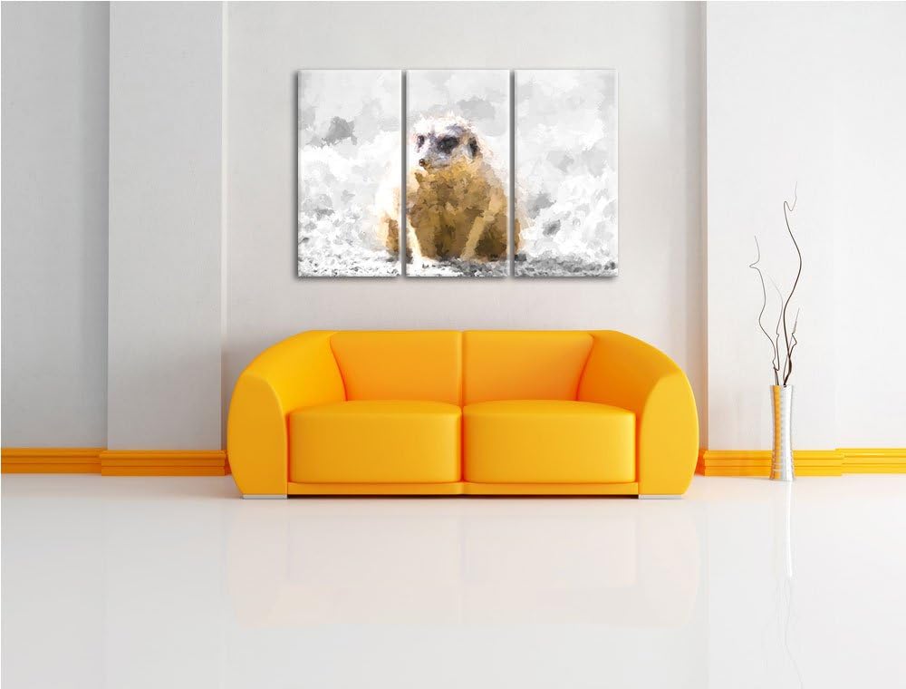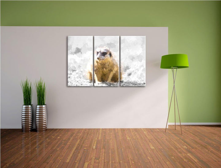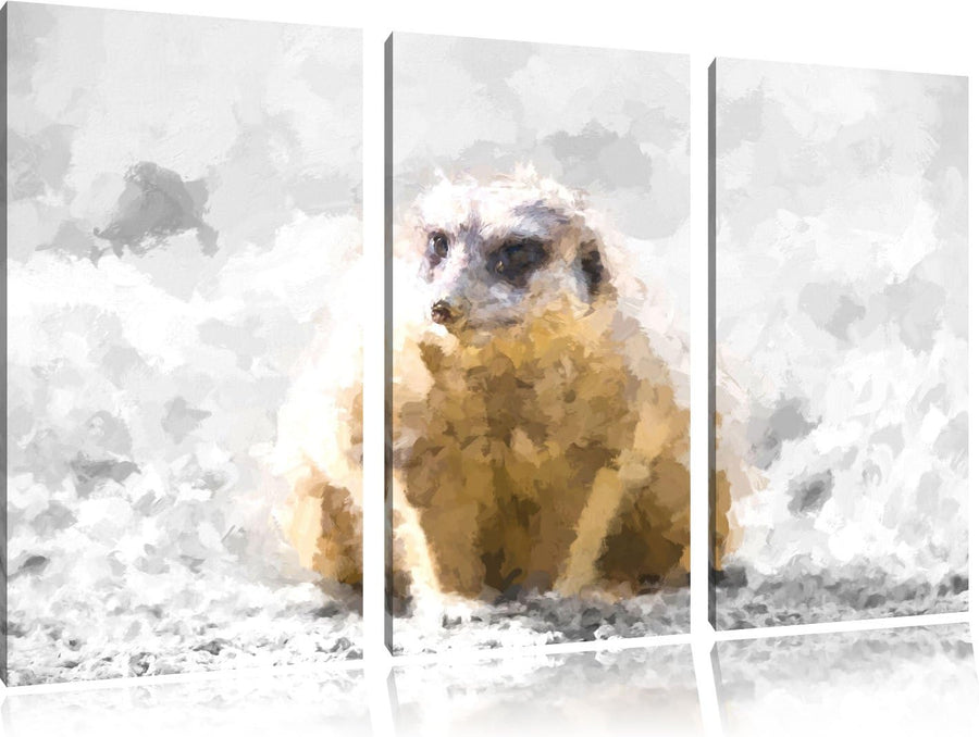 schüchternes Erdmännchen schwarz/weiss Deluxe 3-Teiler Leinwandbild 120x80 Bild auf Leinwand, XXL ri