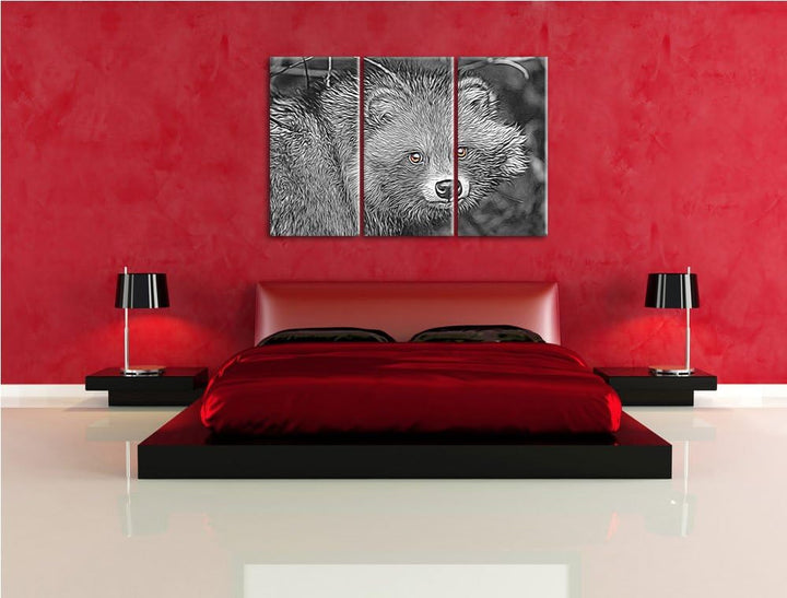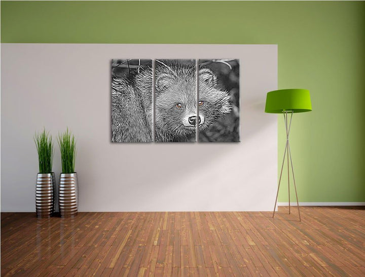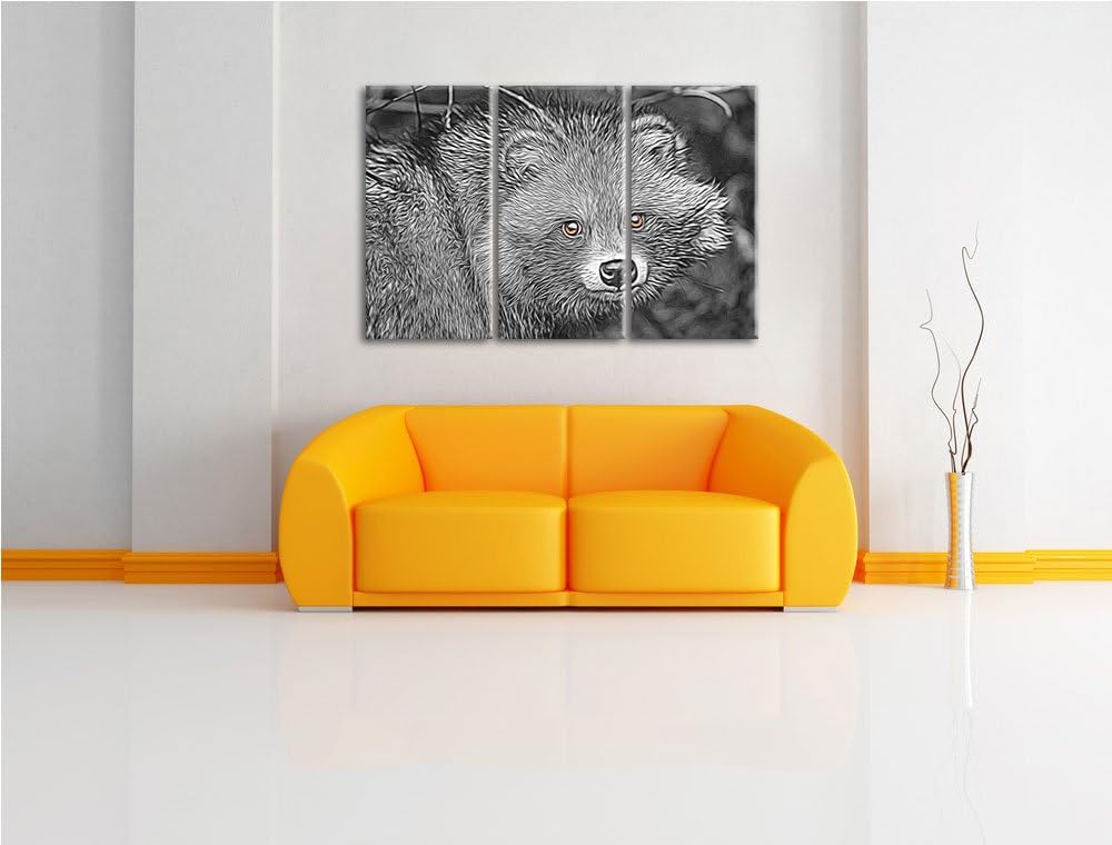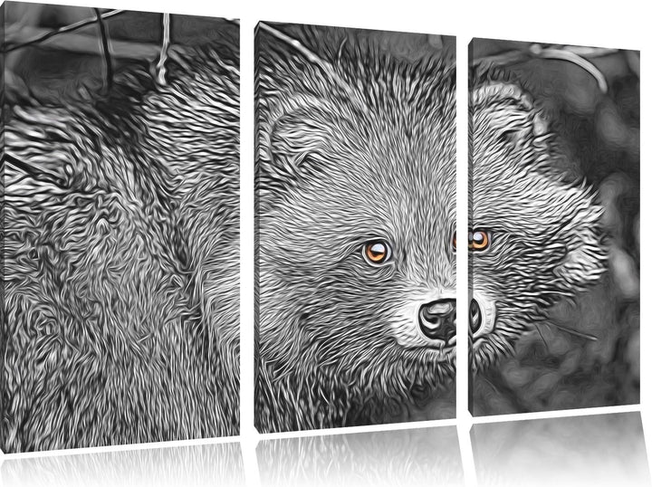 scheuer Waschbär schwarz/weiss Deluxe 3-Teiler Leinwandbild 120x80 Bild auf Leinwand, XXL riesige Bi