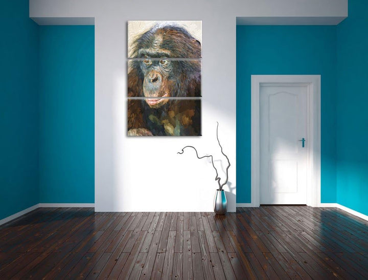 scheuer junger Gorilla Spezial 3-Teiler Leinwandbild 120x80 Bild auf Leinwand, XXL riesige Bilder fe
