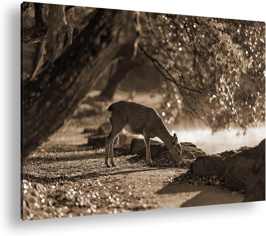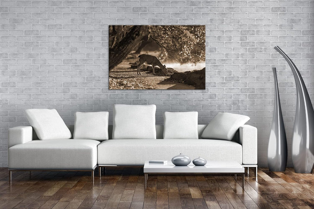 deyoli scheues Reh Format: 80x60 Effekt: Sepia als Leinwandbild, Motiv fertig gerahmt auf Echtholzra