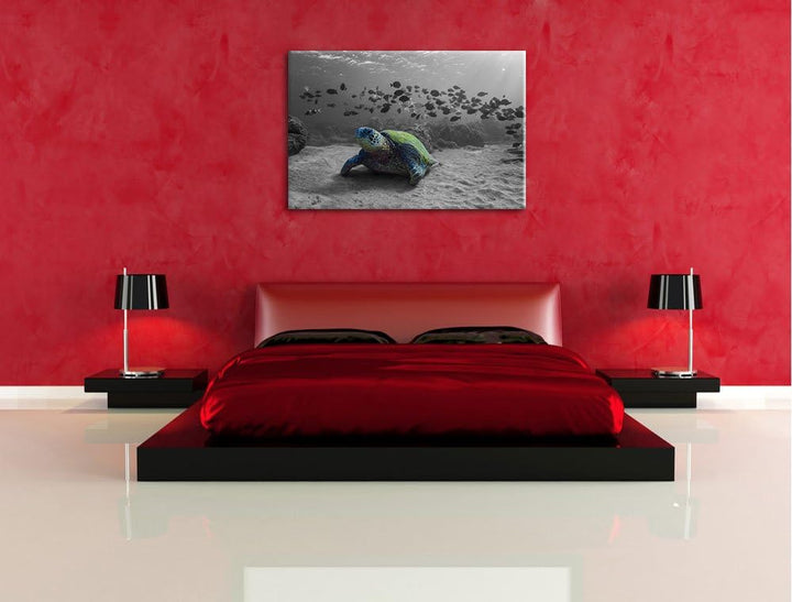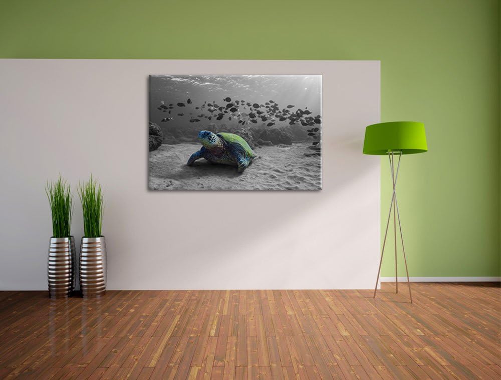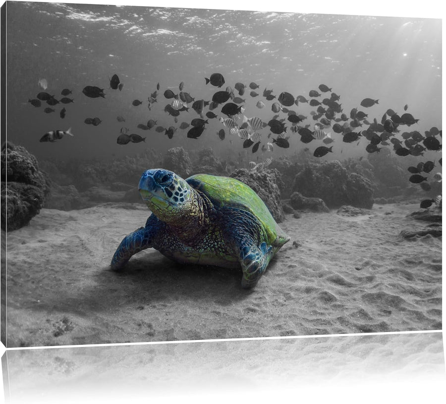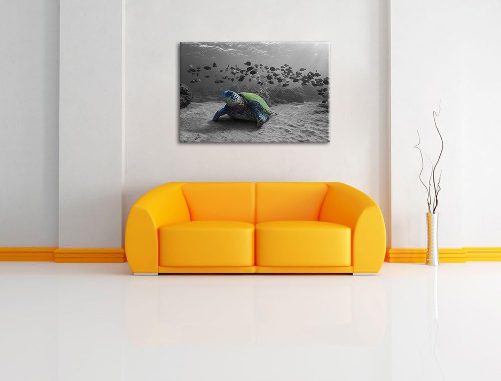 Schildkröte im Ozean schwarz/weiss Format: 100x70 auf Leinwand, XXL riesige Bilder fertig gerahmt mi