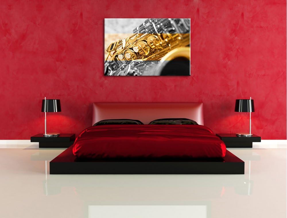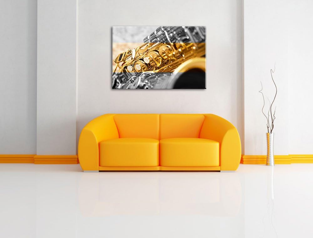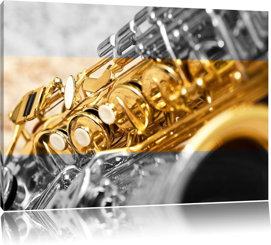 schimmerndes Saxophon schwarz/weiss Format: 100x70 auf Leinwand, XXL riesige Bilder fertig gerahmt m