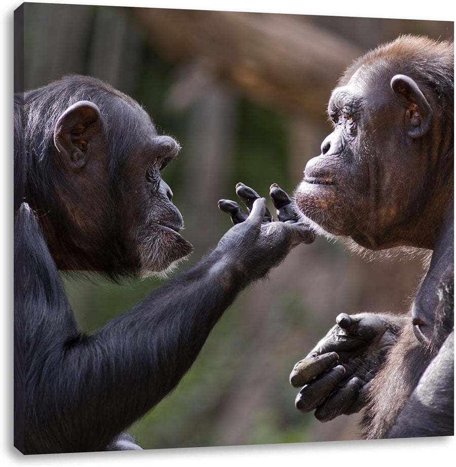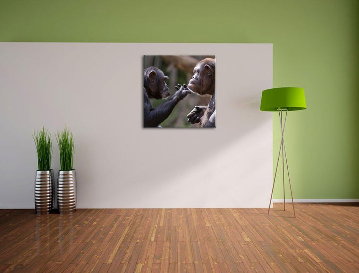 Schimpansen Freundschaft, Format: 70x70 auf Leinwand, XXL riesige Bilder fertig gerahmt mit Keilrahm
