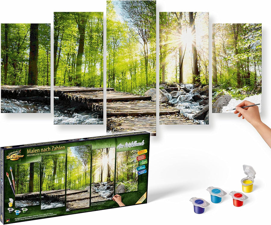 - Tolles Panorama - Die Vorlage zum Malen zeigt eine wunderschöne Landschaft, an einem sommerlichen Tag. Der Bach plätschert unter dem Holzsteg hindurch und wird dabei von der Sonne beleuchtet