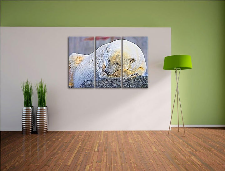 schlafender Eisbär Spezial 3-Teiler Leinwandbild 120x80 Bild auf Leinwand, XXL riesige Bilder fertig