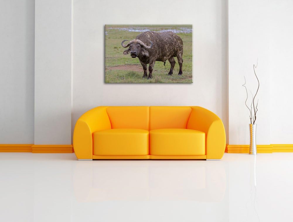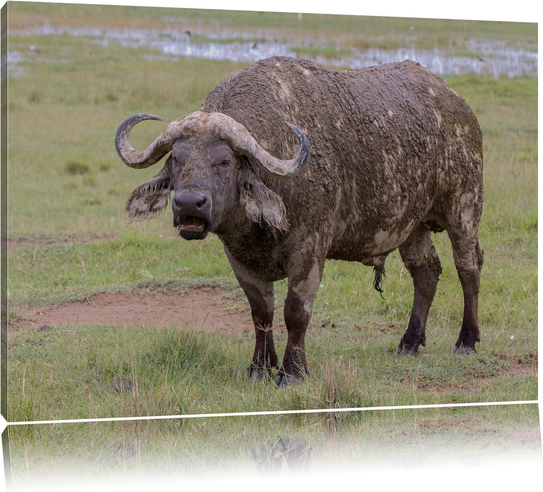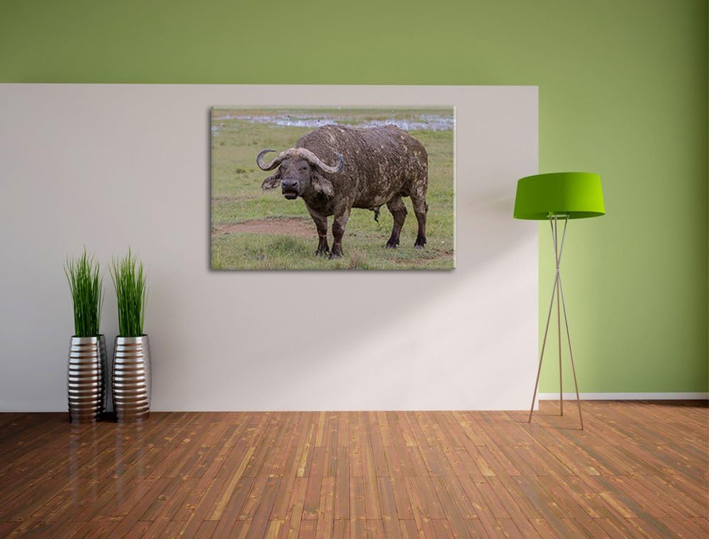Schlamm verschmierter Kaffernbüffel Leinwand, XXL riesige Bilder fertig gerahmt mit Keilrahmen, Kuns