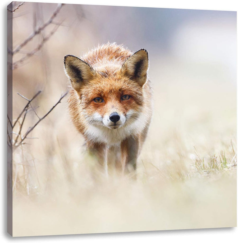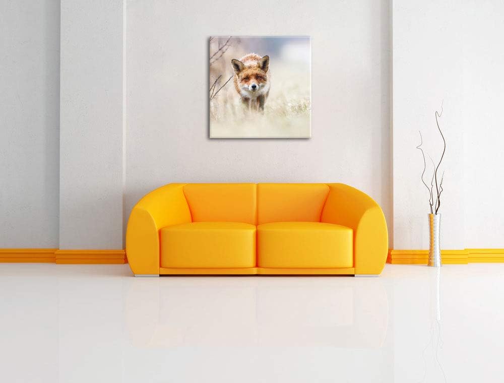Schleichender fuchs, Format: 70x70 auf Leinwand, XXL riesige Bilder fertig gerahmt mit Keilrahmen, K