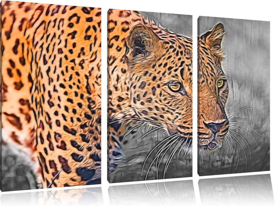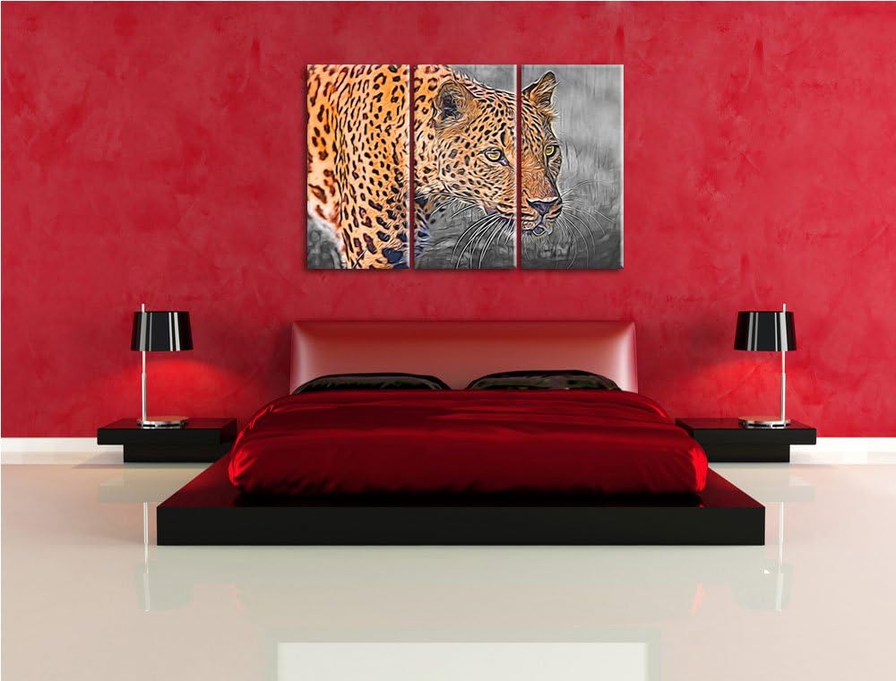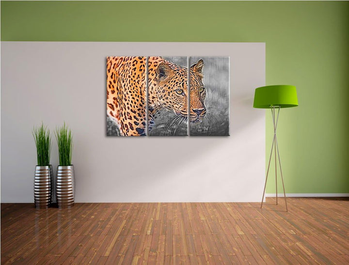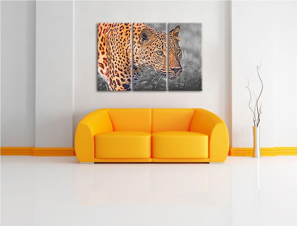 schleichender Leopard schwarz/weiss Deluxe 3-Teiler Leinwandbild 120x80 Bild auf Leinwand, XXL riesi