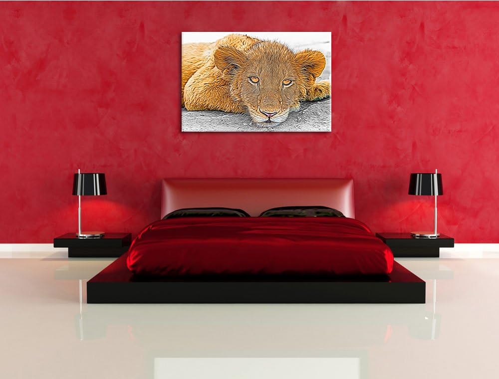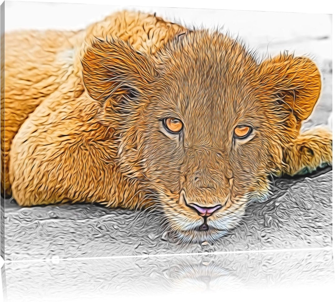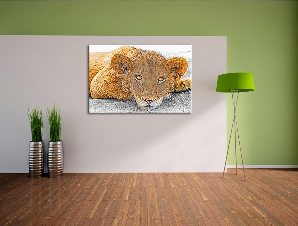 schläfriger junger Löwe schwarz/weiss Deluxe Format: 100x70 cm auf Leinwand, XXL riesige Bilder fert
