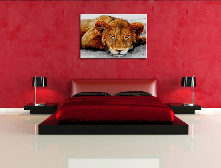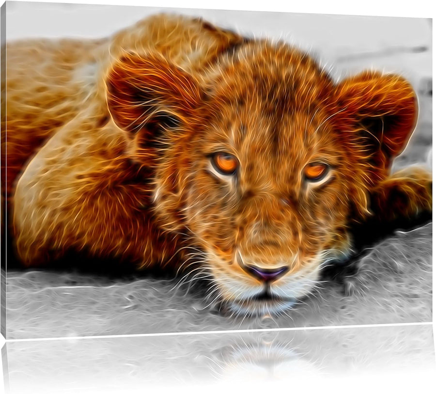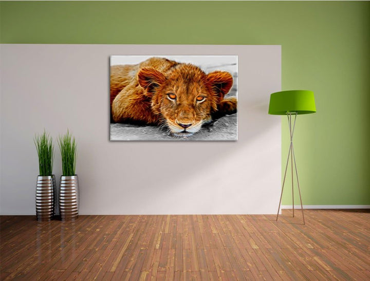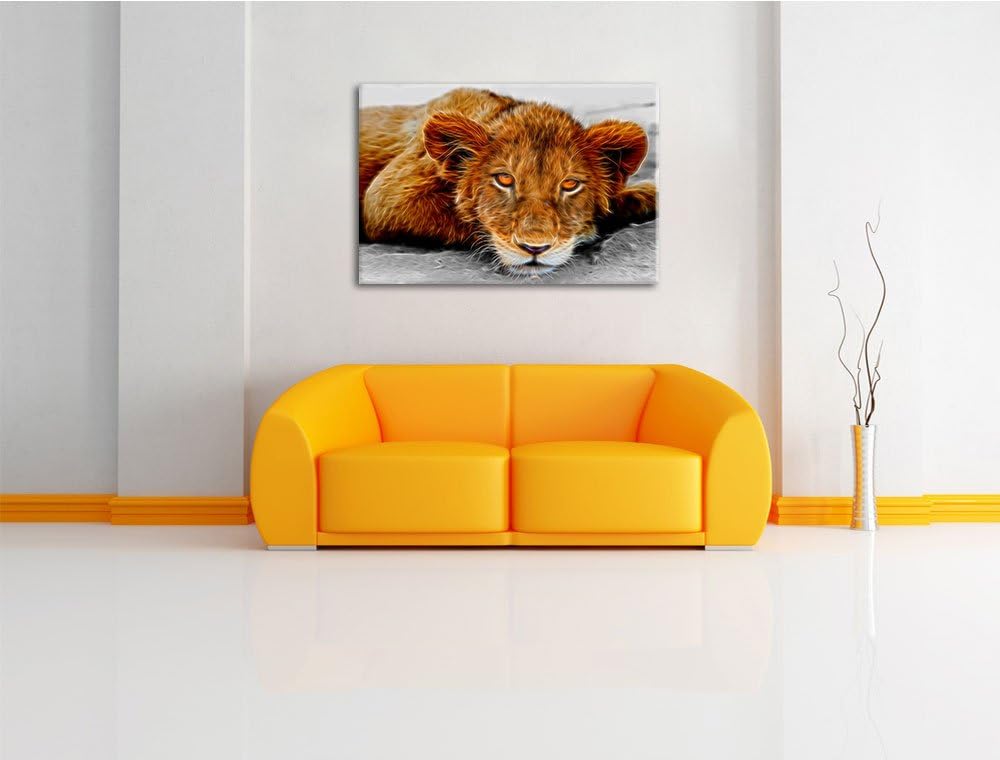 schläfriger junger Löwe schwarz/weiss Deluxe Format: 100x70 cm auf Leinwand, XXL riesige Bilder fert