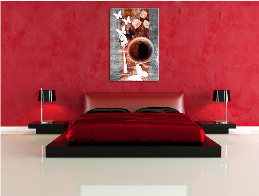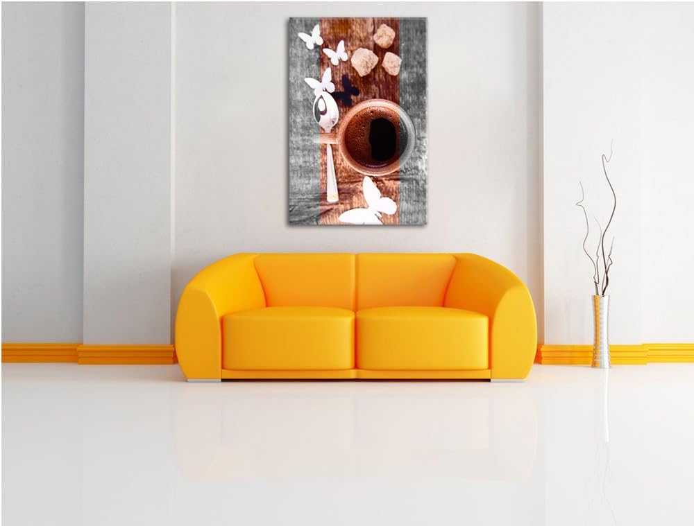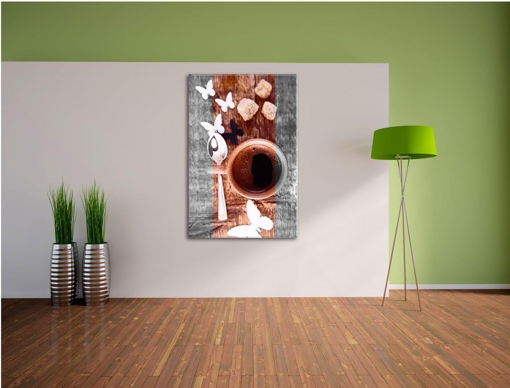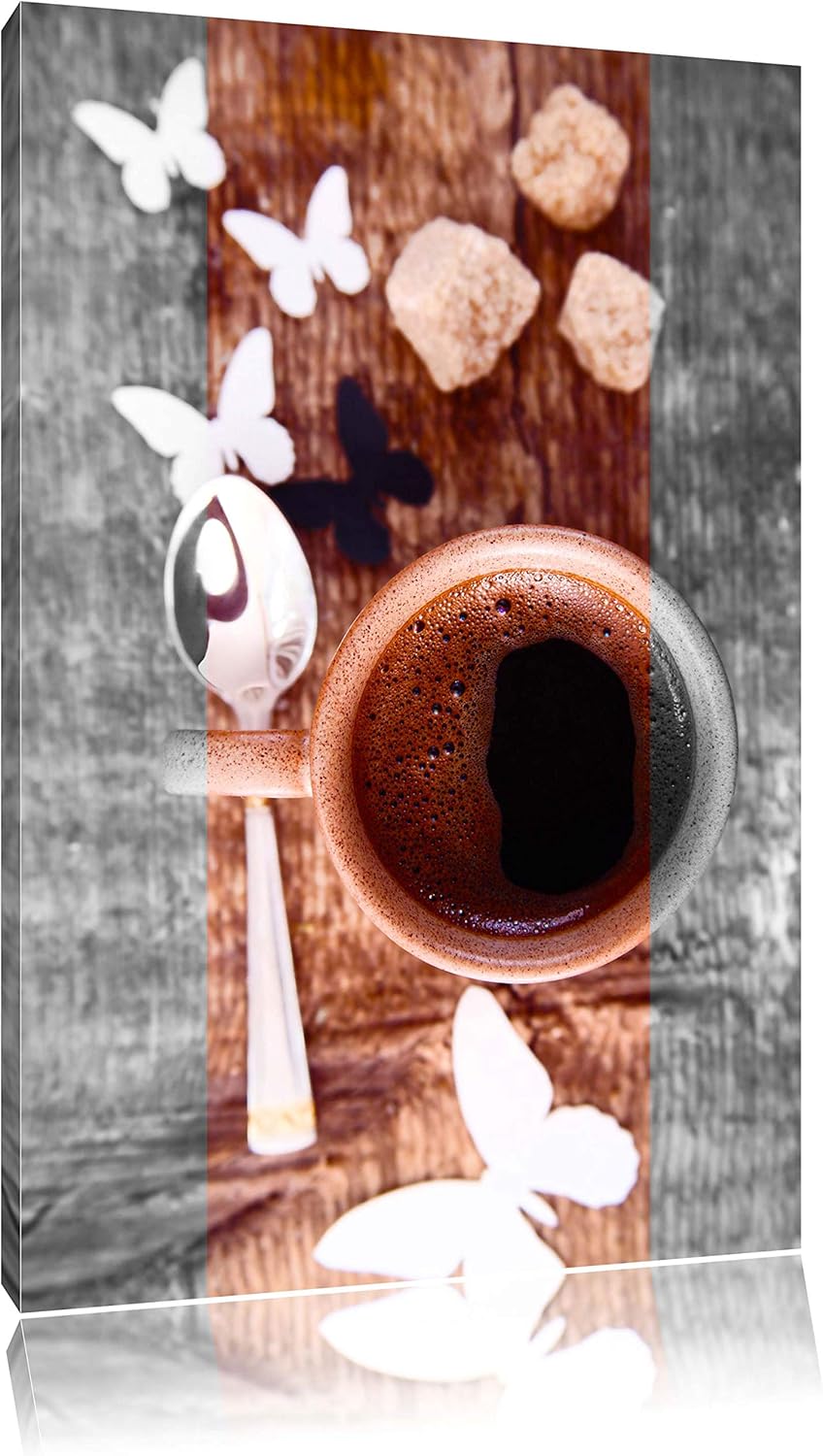 schmackhafter Kaffee mit Schmetterlingsdeko schwarz/weiss Format: 100x70 auf Leinwand, XXL riesige B