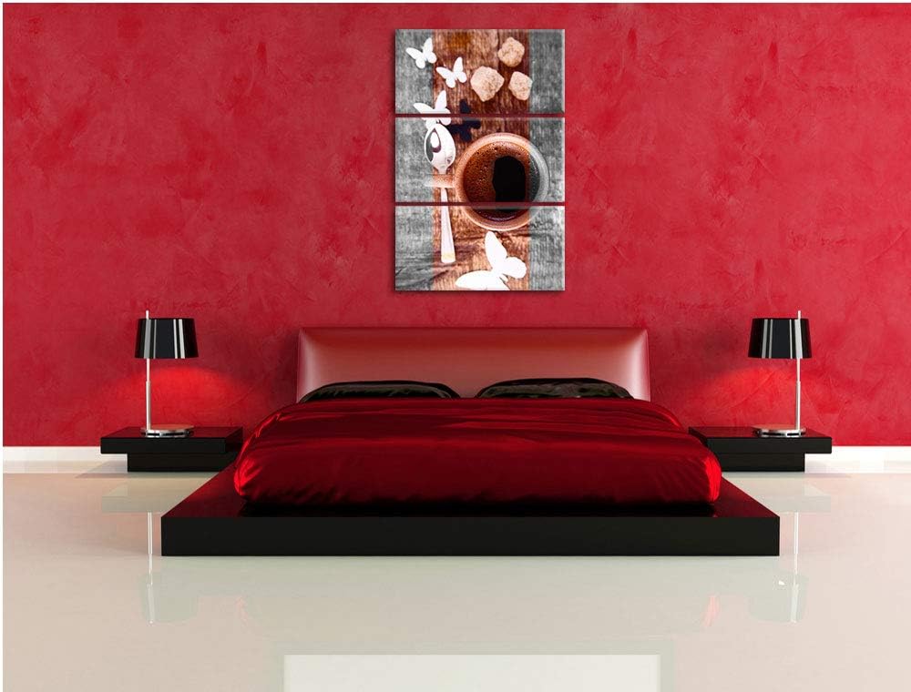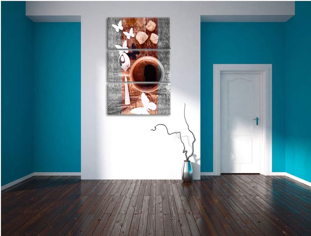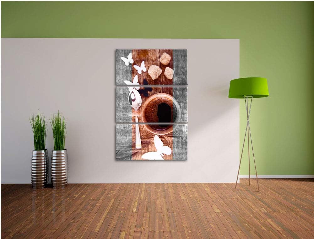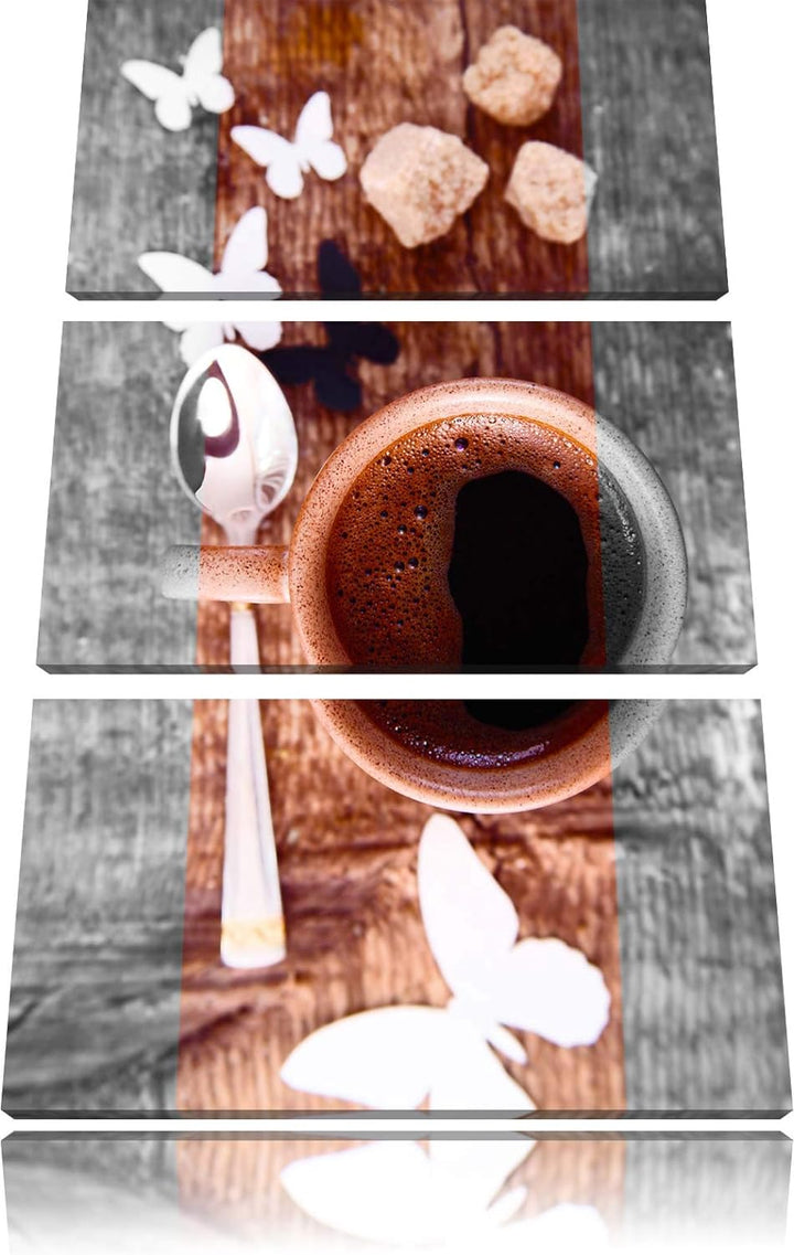schmackhafter Kaffee mit Schmetterlingsdeko schwarz/weiss 3-Teiler Leinwandbild 120x80 Bild auf Lein
