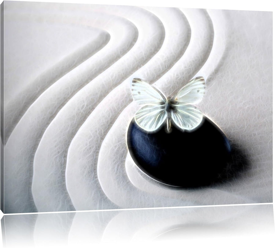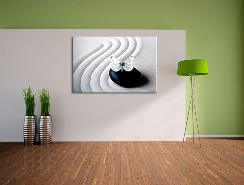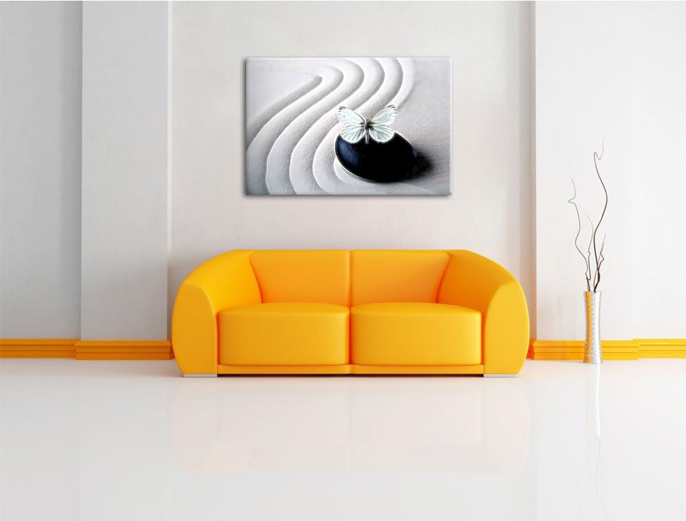 Schmetterling auf Zen Stein im Sand Deluxe Format: 100x70 cm auf Leinwand, XXL riesige Bilder fertig