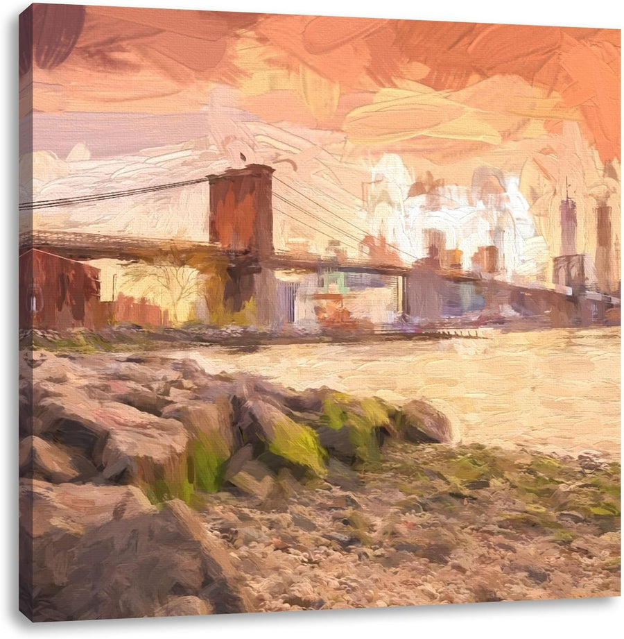 schöne Brooklyn Bridge, Format: 70x70 auf Leinwand, XXL riesige Bilder fertig gerahmt mit Keilrahmen