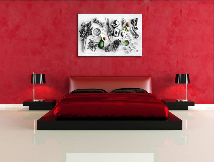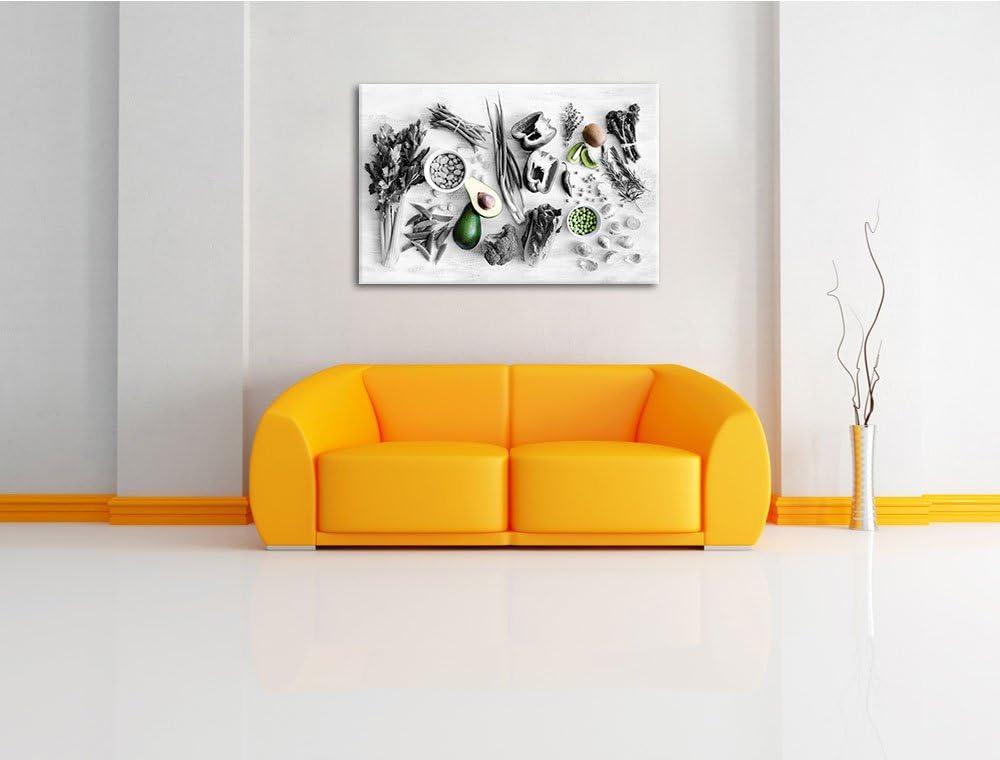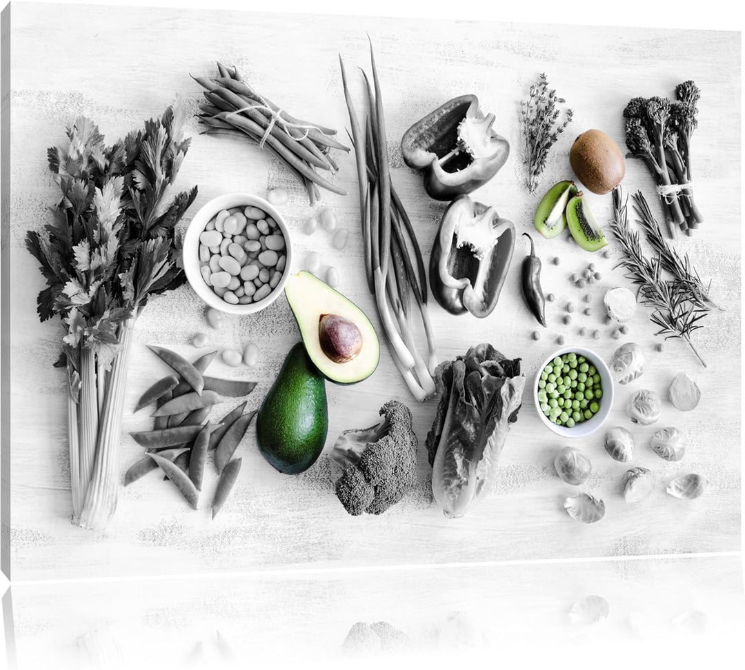 schöne Gemüse und Obst Vielfalt schwarz/weiss Format: 100x70 auf Leinwand, XXL riesige Bilder fertig