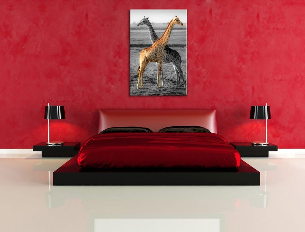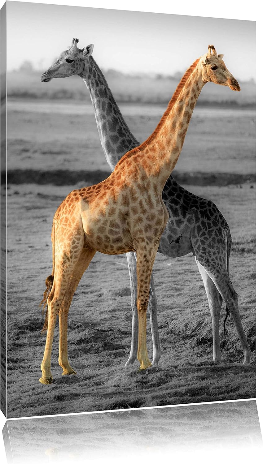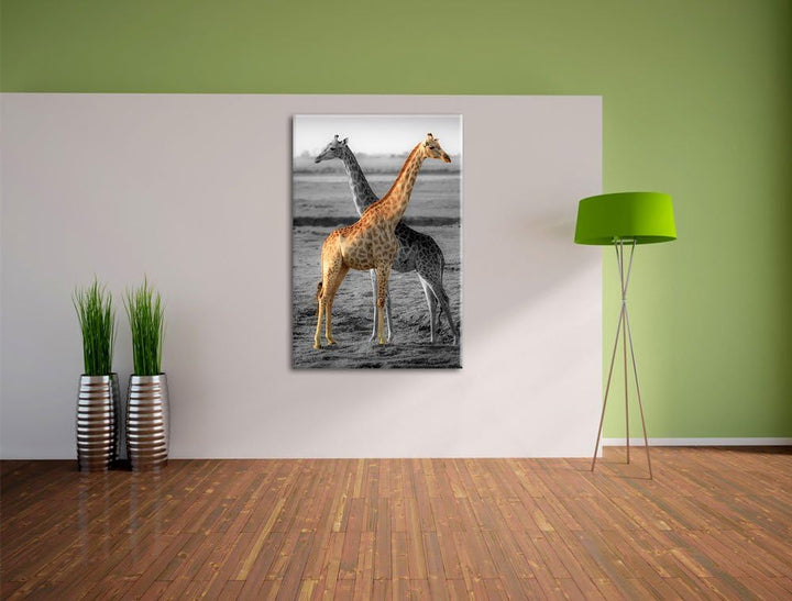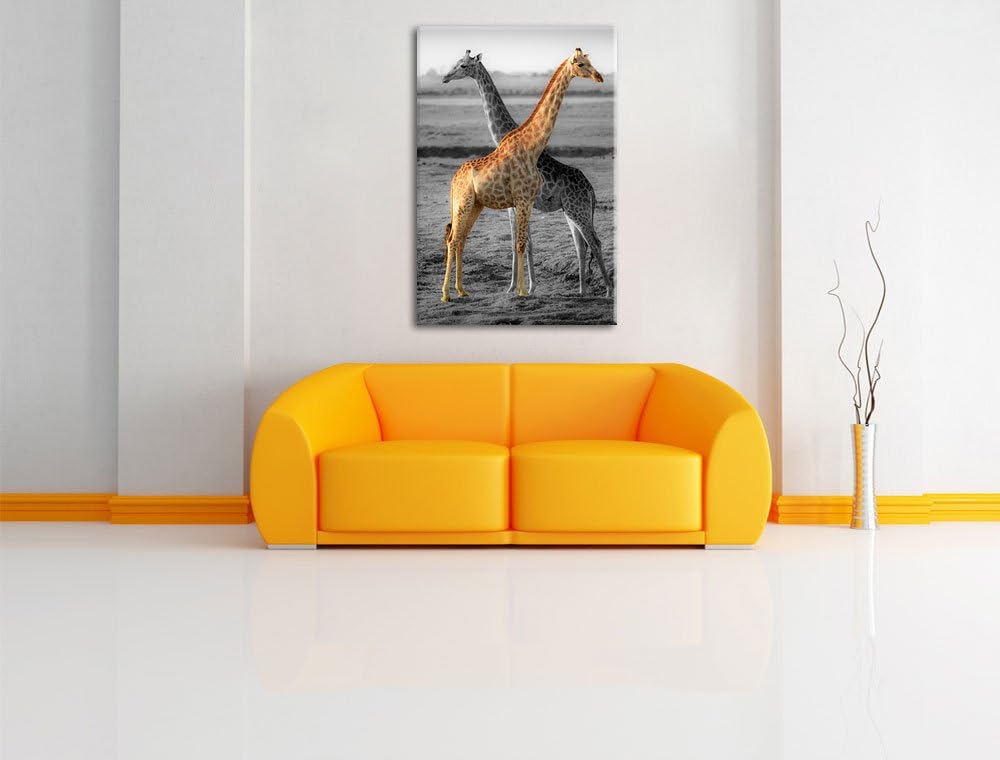 schöne Giraffen in der Steppe schwarz/weiss Format: 100x70 auf Leinwand, XXL riesige Bilder fertig g