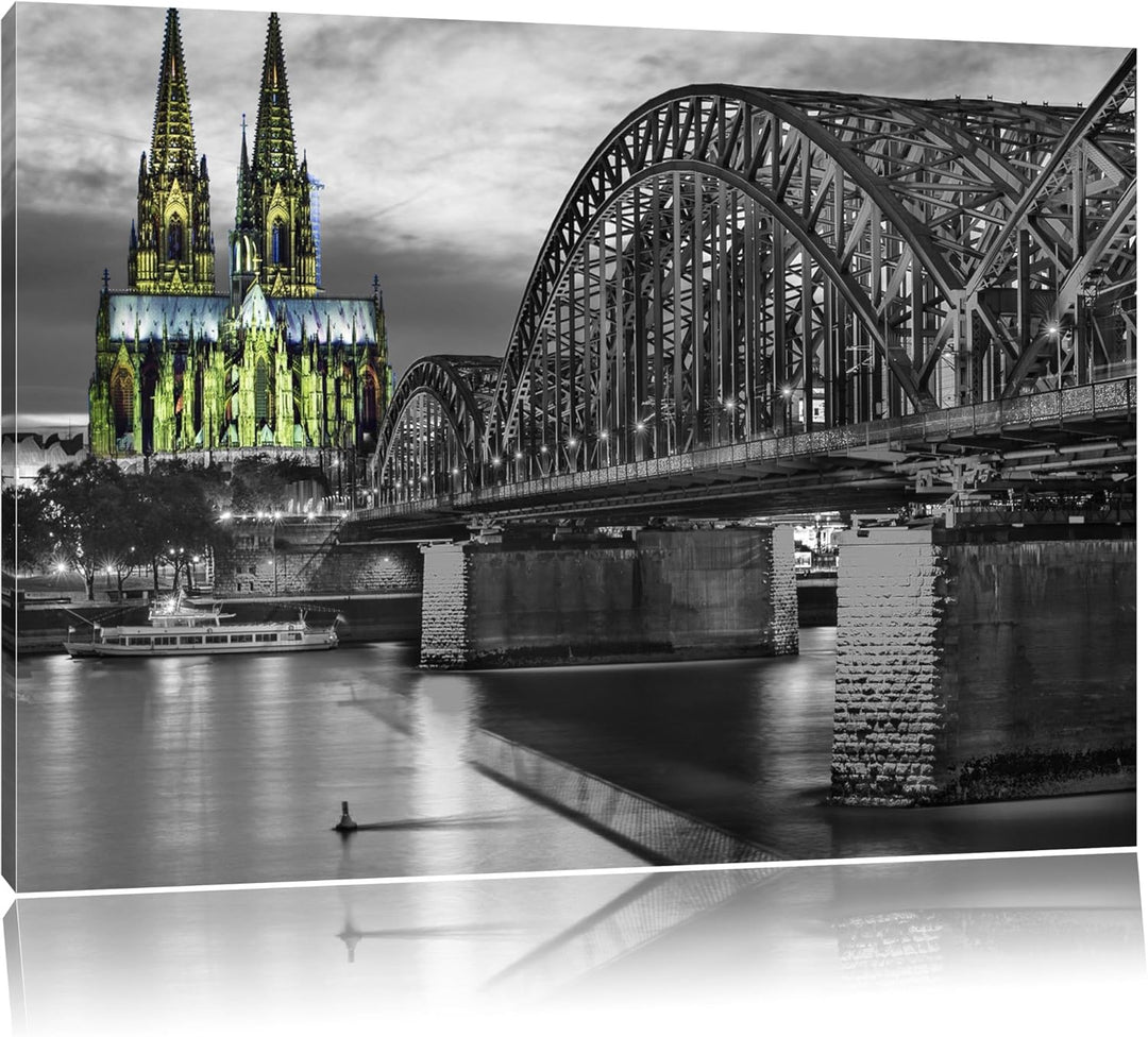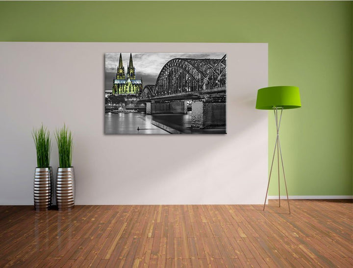 schöne Hohenzollernbrücke schwarz/weiss Format: 100x70 auf Leinwand, XXL riesige Bilder fertig gerah