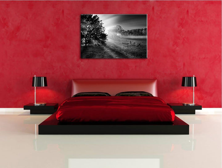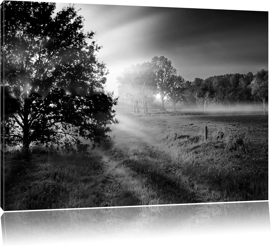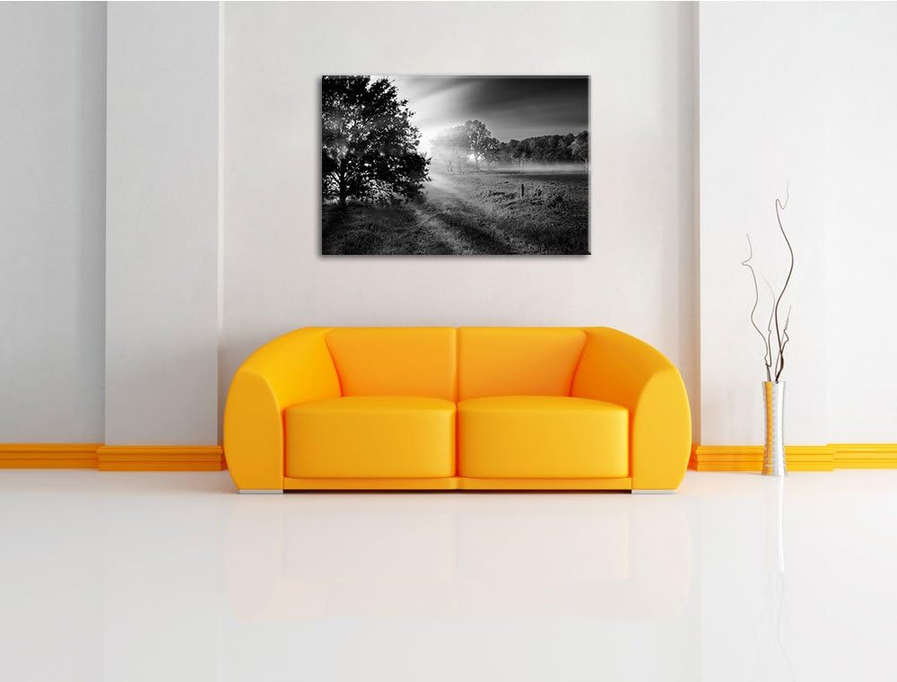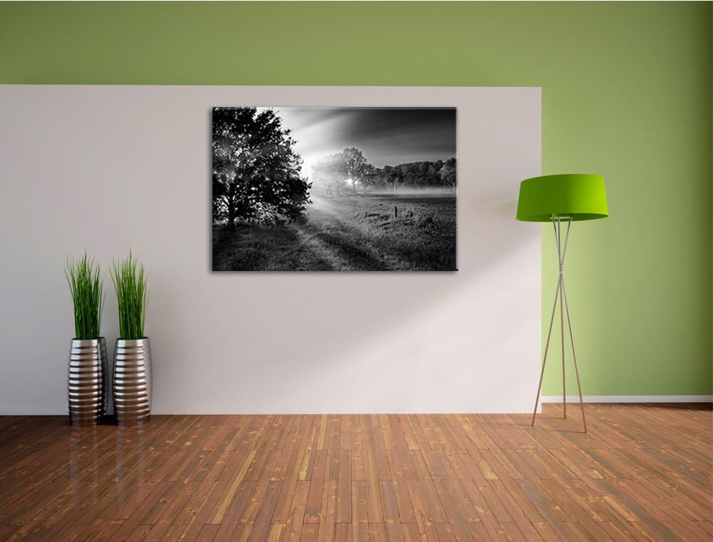 schöne Lichtung im Wald schwarz/weiss Format: 100x70 auf Leinwand, XXL riesige Bilder fertig gerahmt