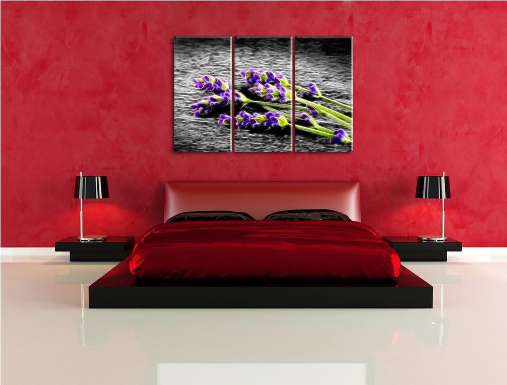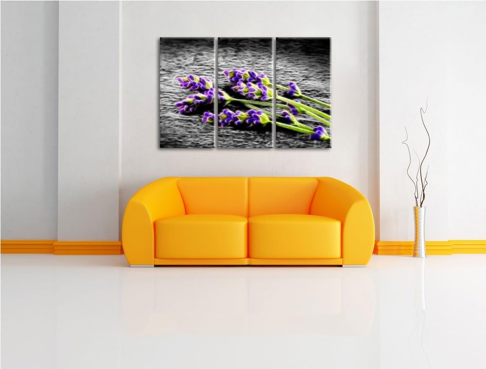 schöne Lila Blumen3-Teiler Leinwandbild 120x80 Bild auf Leinwand, XXL riesige Bilder fertig gerahmt