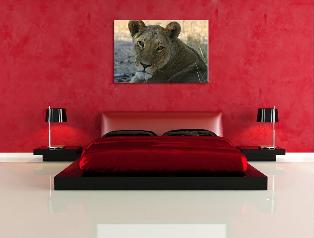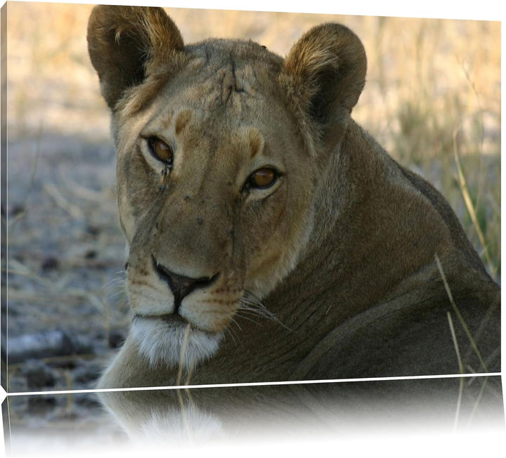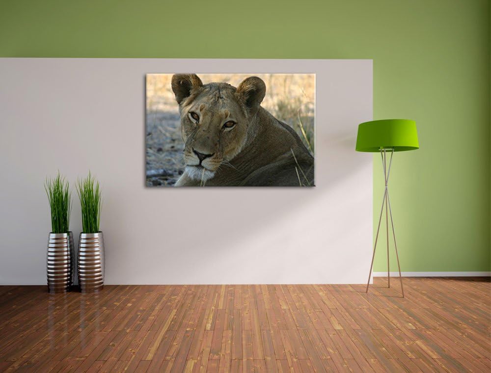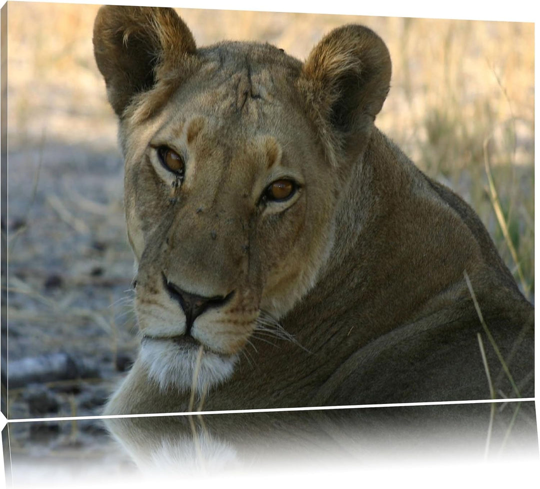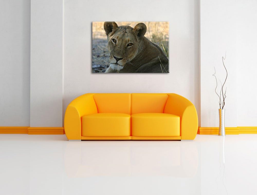 schöne Löwin im Wildgras Leinwand, XXL riesige Bilder fertig gerahmt mit Keilrahmen, Kunstdruck auf