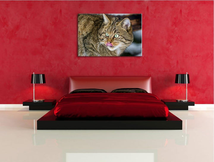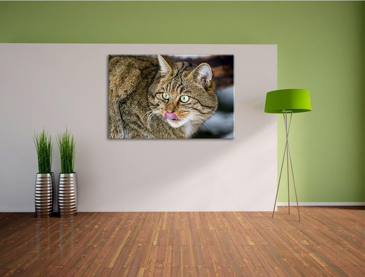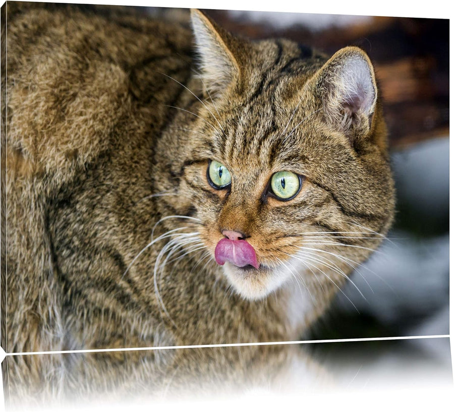 schöne Manul in Schneelandschaft auf Leinwand, XXL riesige Bilder fertig gerahmt mit Keilrahmen, Kun