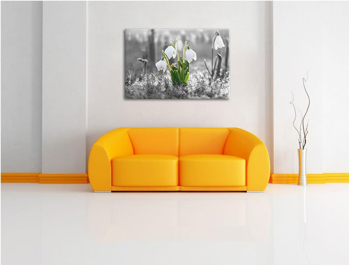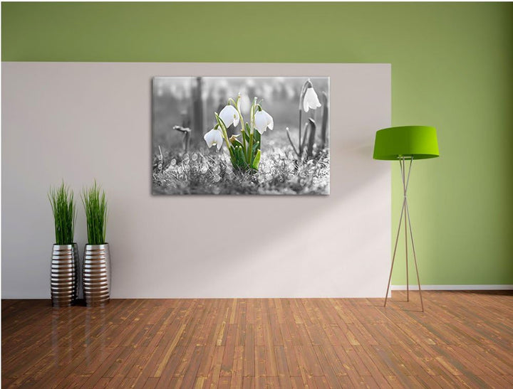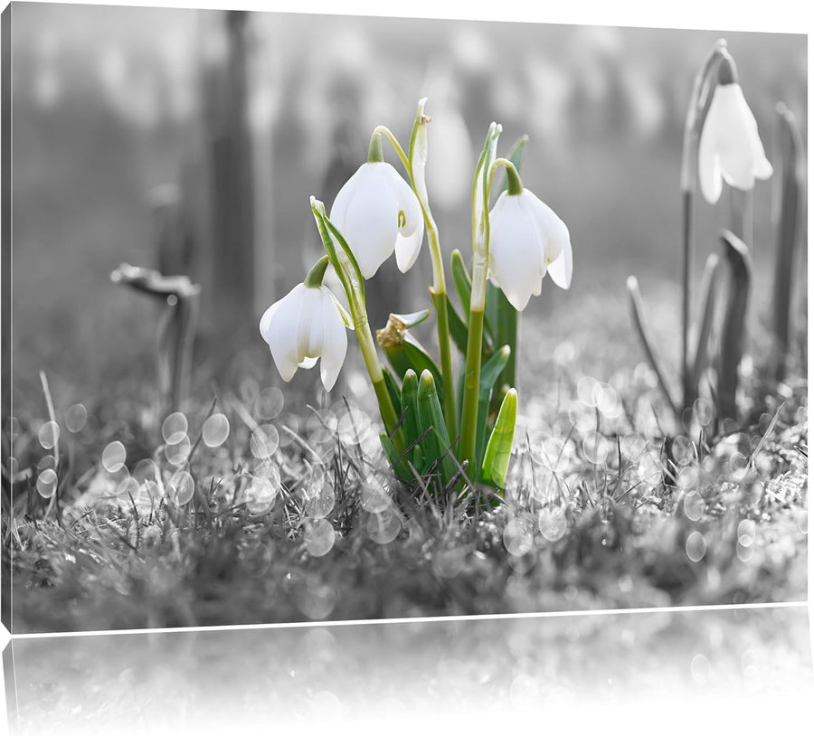 schöne Schneeglöckchen im Morgentau schwarz/weiss Format: 100x70 auf Leinwand, XXL riesige Bilder fe