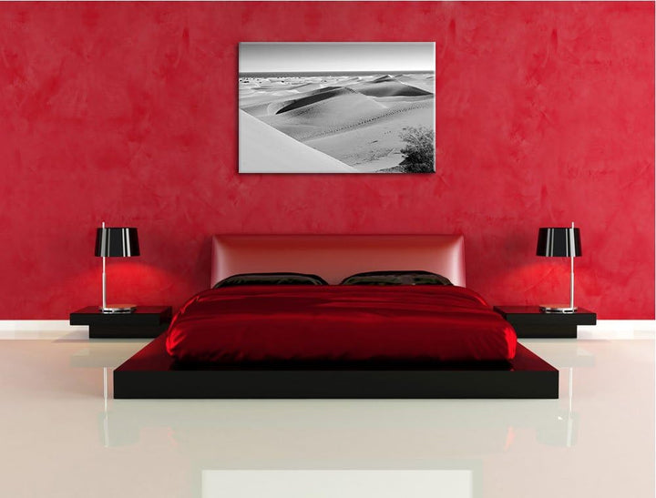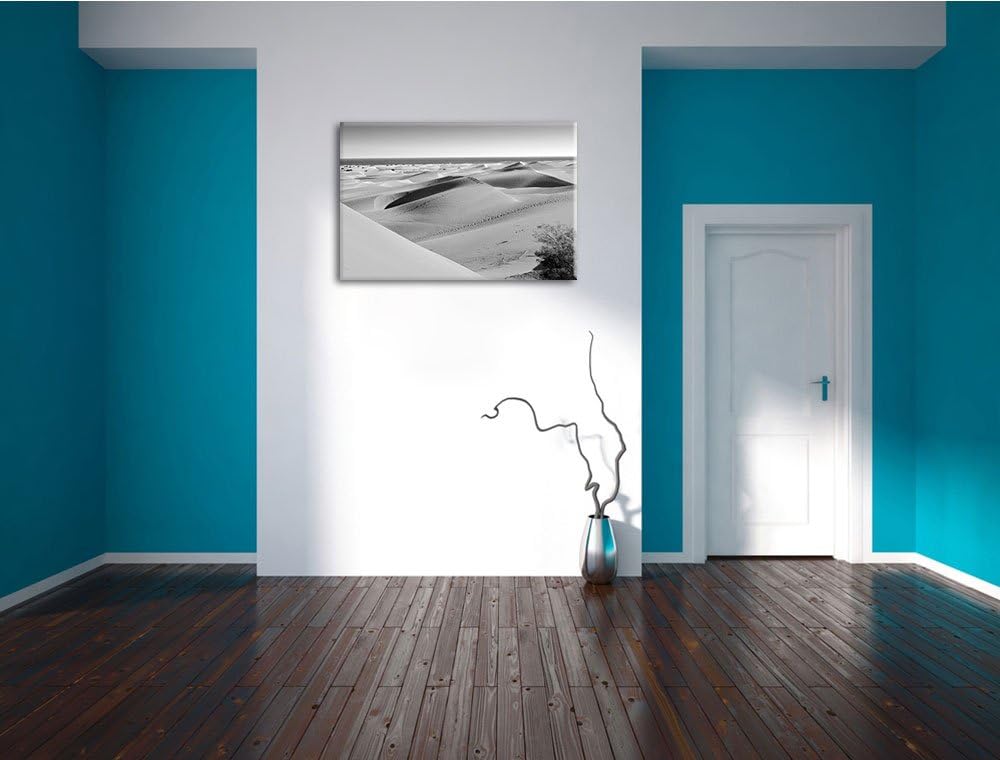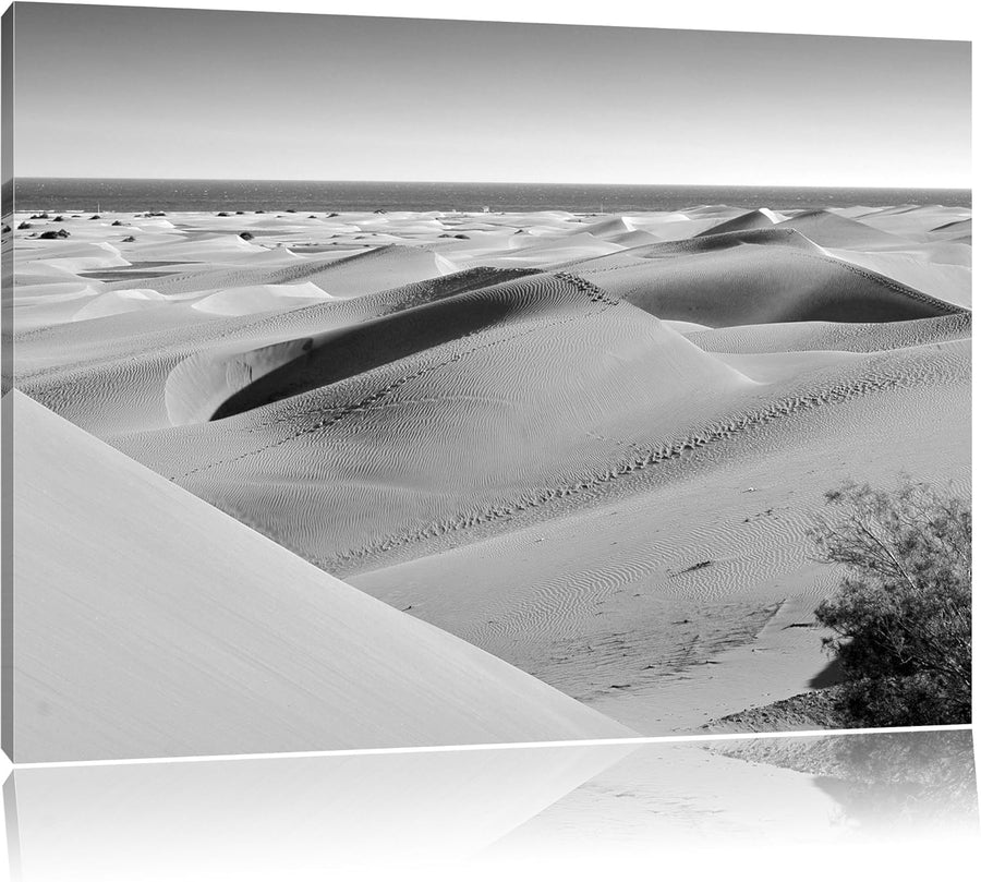 schöne Wüste am Meer schwarz/weiss Format: 100x70 auf Leinwand, XXL riesige Bilder fertig gerahmt mi