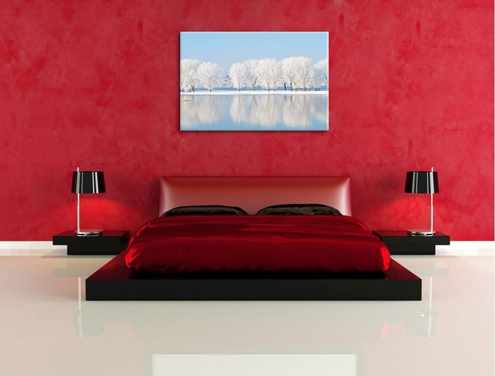 Schneebedeckte Bäume im Winter Format: 100x70 auf Leinwand, XXL riesige Bilder fertig gerahmt mit Ke