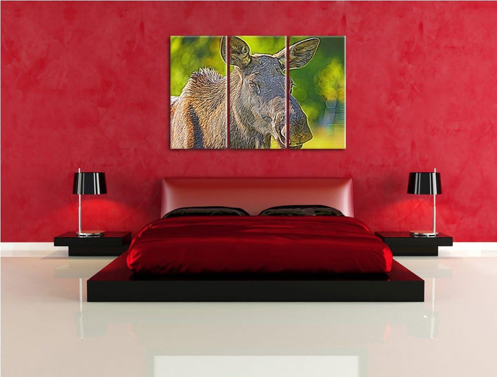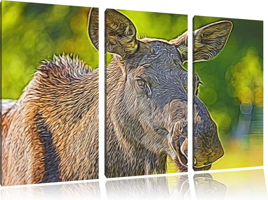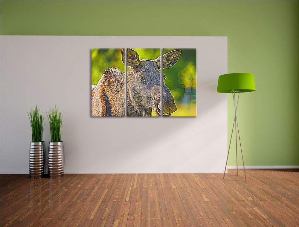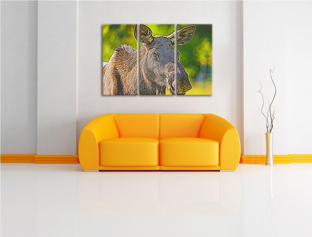 schöne Elchkuh auf Wiese Spezial 3-Teiler Leinwandbild 120x80 Bild auf Leinwand, XXL riesige Bilder