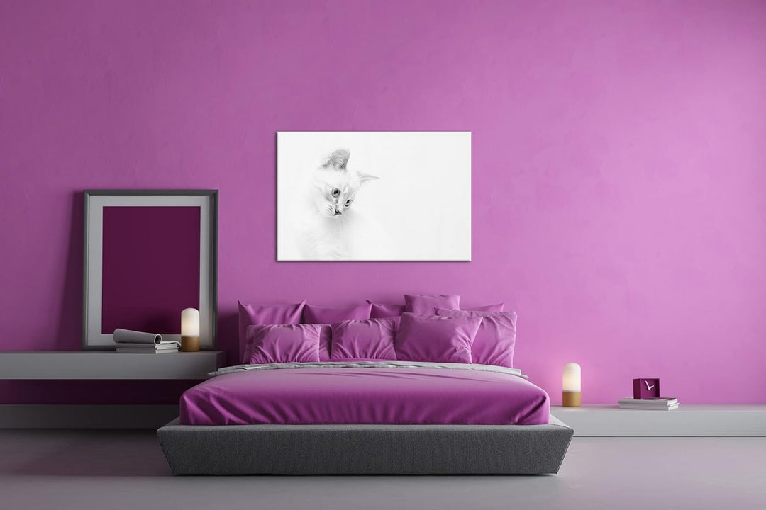 deyoli schneeweisses Kätzchen Effekt: Schwarz&Weiss, Format: 80x60 als Leinwandbild, Motiv fertig ge